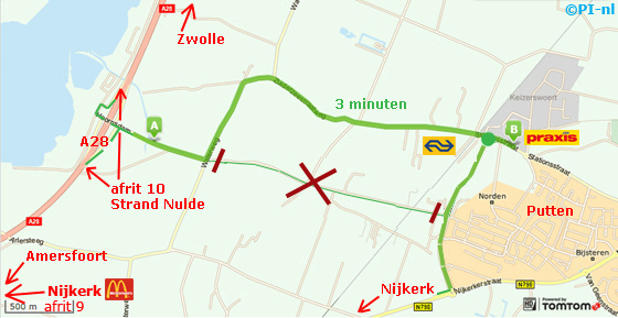 - Rijd via de Hoornsdam en de Waterweg richting treinstation Putten.
